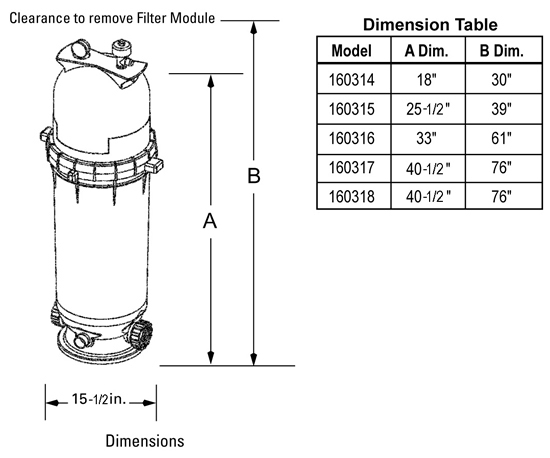 Clean & Clear® Filters feature a chemical resistant tank with no-tool servicing and a coreless cartridge for easier cleaning. All models are equipped with easy spin-on unions for plumbing hook-ups. These filters are NSF listed for commercial applications and are available in 50, 75, 100, 150, and 200 square foot sizes.
