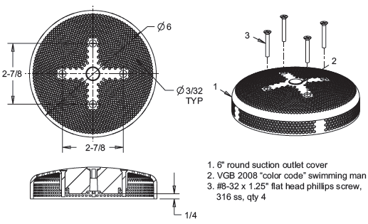 For single or multiple drain use in gunite, steel, vinyl, fiberglass and tile pools and spas