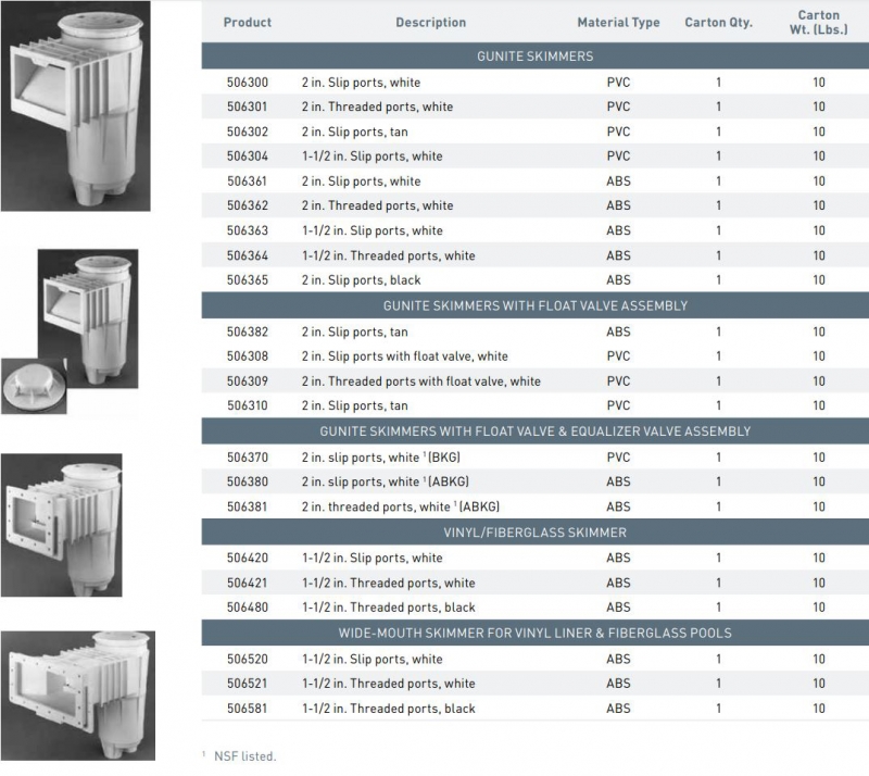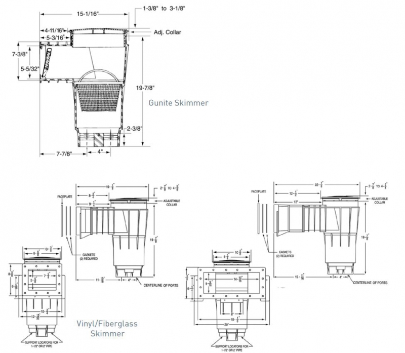 Bermuda Skimmers feature a heavy-duty one-piece construction with sturdy external ribbing for superior strength. All Bermuda Skimmers for vinyl liner and fiberglass pools are made from ABS plastic.