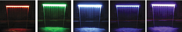 CMP Brilliant Wonders LED Waterfalls are the premier lighted waterfalls in the pool industry. The LED strip is built into the unit (instead of using external fiber optics) placing the light as close to the water as possible. This design makes a separate light source unnecessary.