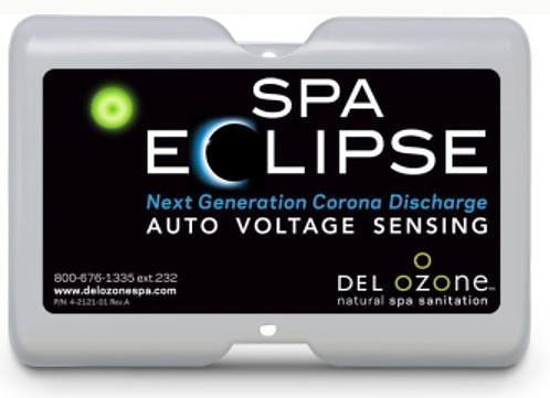 The energy efficient Spa Eclipse™ (now available in Dual Voltage) includes a corona discharge (CD) chip performance viewing window. Unlike UV lamps that can keep glowing even when the ozone life is gone, the CD Chip diminishes its glow when a replacement chip is needed. To maintain optimal performance, the Spa Eclipse™ utilizes a Renewal Kit which includes a replacement 5-0561 CD chip, five feet of 7-0075 tubing, one 7-1140-01 check valve and four hose clamps. The Spa Eclipse is perfect for just about any spa and using DELs patented CD Chip technology has many advantages. It is energy efficient, which means lower operating costs, and because there is no starter or ballast, the isolated circuitry of the Spa Eclipse eliminates voltage spikes. The Spa Eclipse chip is also water resistant and generates substantially less heat than UV systems. The Spa Eclipse has a viewing window which allows you to see the CD energy field. Unlike UV Lamps that falsely indicate that there is still ozone, the CD Chip diminishes its glow when a replacement chip is needed at 9,000 hours.