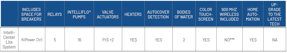 Best-in-class automation with IntelliCenter system is now available for virtually any pool. With five relays, a smaller enclosure, and free wireless antenna included, this all new control system has all the benefits of the IntelliCenter system on a smaller scale, including price. And it's designed with electricians in mind.