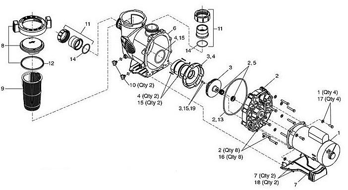 Diffuser/Impeller Hardware Screw w/ O-Ring, Impeller Mounting Screw, Diffuser Mounting Washer, Diffuser Mounting O-Ring