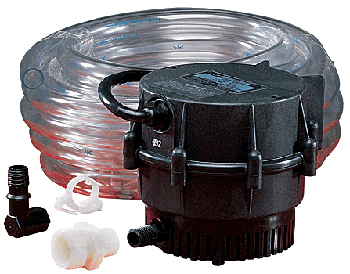 A ready-to-use kit that contains the powerful model NK-2 pump with 18' power cord, garden hose adaptor for 1/4" MNPT outlet, 25' of 1/2" I.D. tubing and fastener clamp.