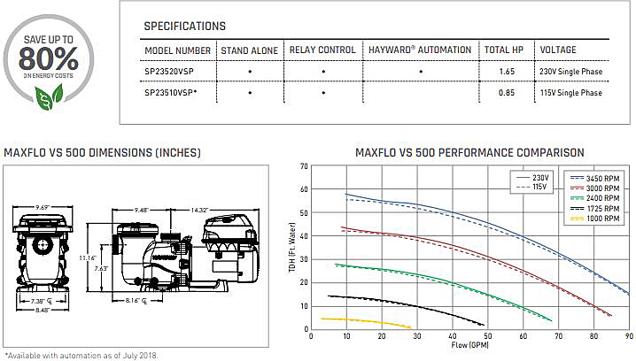 MaxFlo VS™ brings variable-speed technology to the popular MaxFlo pump family. They are a drop-in variable-speed pool pump upgrade that delivers up to 80% energy cost savings over single speed models. Designed for small to medium pools, MaxFlo VS pays for itself faster than larger, more expensive models.