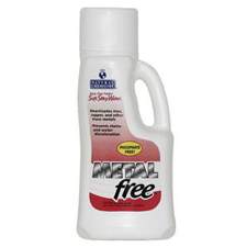METALfree is a highly effective metal deactivation agent that prevents staining and discoloration from trace metals such as iron and copper. METALfree also prevents scale build-up due to calcium and other minerals. These trace metals and minerals may already be in the pool water or in the fill water. It should be used as part of a well designed weekly pool maintenance program. METALfree does not contain phosphonic acids and will NOT raise phosphate levels in pool water