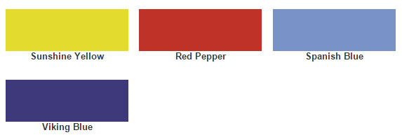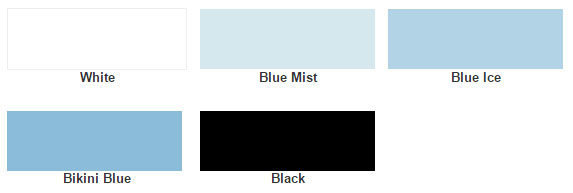 White, Blue Ice, Blue Mist, Bikini Blue and Black.