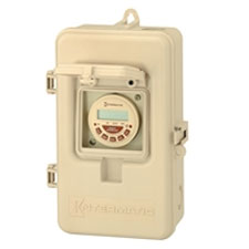 This line of electronic time switches in safety enclosures is specially suited for applications where there is a need to turn equipment up to 8 ON and OFF cycles daily, and where the automatic operation of the equipment requires occasional override by someone other than a qualified service professional. Electronic technology allows up-to-the-minute programming accuracy. The unique “door within the door” provides safe access to the timer control buttons, but prevents entry into the wiring compartment. Light indicator illuminates when timer is in ON position.