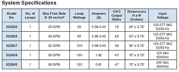 • Energy efficient, high-output UV lamps provide up to 12,000 hours of continuous operation