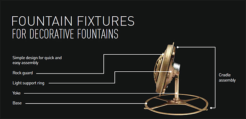 Pentair Fountain Fixtures are the only fixtures that offer true color lighting capabilities, as well as traditional white lighting. Both large and small fixtures are designed for easy installation and for use with Pentair Pool Products lights only.
