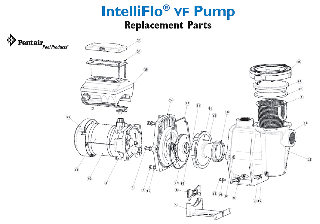 Power end IntelliFlo VF, almond (contains items: 2, 4, 10, 11, 13, 15, 16, 17, 19, 22, 23, 28, 30)