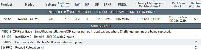 IntelliFloXF VSF pump is the first variable speed and flow pump that adjusts to changes in flow system conditions to maintain its programmed flow rate. With the highest available performance and efficiency, it is perfectly suited for large and feature rich pools with high flow demand.