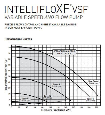 Eliminate the guesswork The IntelliFloXF® VSF Pump is the first to adjust to changes in flow conditions to maintain its preprogrammed flow rate. It’s like having cruise control for your pump, so it runs optimally throughout the entire filtration cycle. Highest available efficiency Since the IntelliFloXF VSF pump is ultra energy efficient, you can experience increased energy savings, up to 90%*, when compared to conventional single- or two-speed pumps. Superior hydraulic design The IntelliFloXF® VSF pump is perfectly suited for large and feature-rich pools with high flow demands to power waterfalls, slides, negative edges and more.