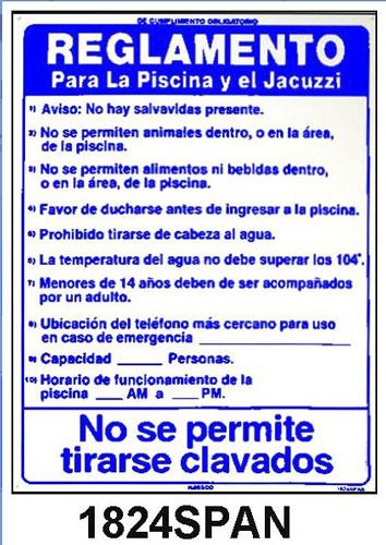 Pool Rules Sign in Spanish 18 inches x 24 inches