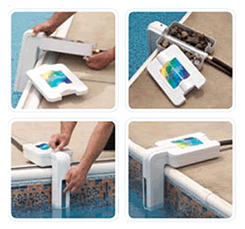 THE POOL SENTRY™ is used to maintain the water level of a pool, spa or pond automatically and unattended. When the Pool Sentry is removed from the box, it is easily assembled by threading the fill tube into the float valve. Snap the fill tube and float valve into the base and fill the base with small rocks or pea gravel. Next, snap the top cover onto the base and attach the garden hose (not included). Finally, adjust the float to the desired position.