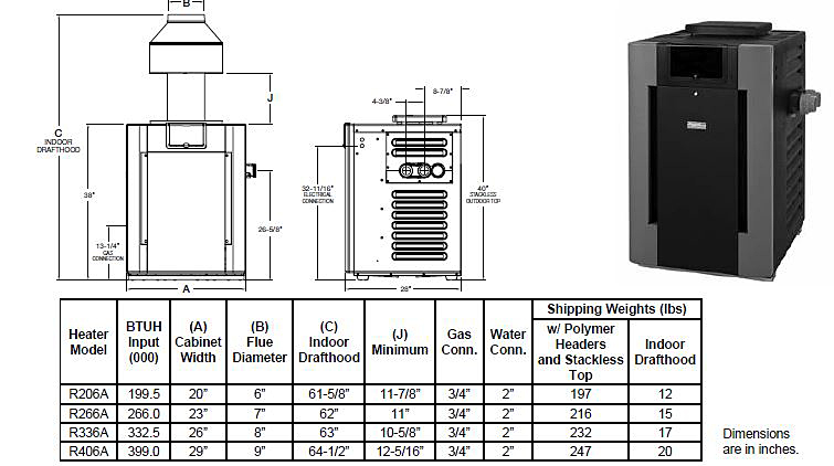No need for fans to combat drafting problems under normal conditions. This heater is designed to draft naturally in outdoor installations with its exclusive low-profile design. It is so thoughtfully and carefully designed it actually protects itself from the things that tend to stifle ordinary pool and spa heaters. It delivers uninterrupted heating performance regardless of falling leaves, wind, airborne debris, rain, downdrafts, updrafts, sleet, snow, etc.