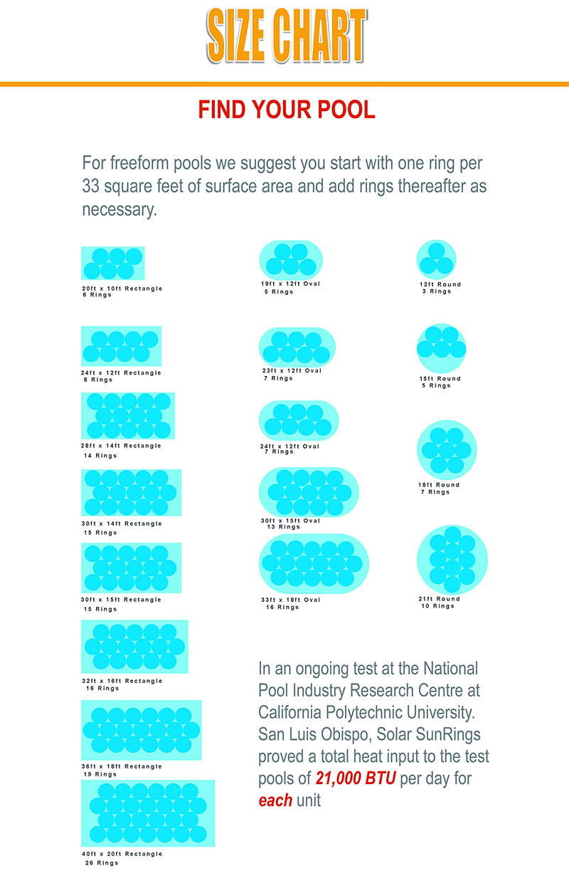 HEATING: Once the Solar Sun Rings are inflated, cover up to 60% to 70% of the surface of your pool with Solar Sun Rings by placing the blue colored side on the water. You should not cover more than 70% of the surface on deep pools and not more than 80% on shallow pools. For the best solar effect, keep the upper surface of the Solar Sun Rings clean and clear. COOLING: Turn the Solar Sun Rings over so the blue side is up. The Solar Sun Rings do not heat water efficiently when upside down. WATER AND CHEMICAL SAVING: Neither water nor chemicals can evaporate through the two layers of heavyweight vinyl. You will save on water and chemicals about equal to the actual percentage of water covered.