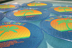 CARE: Once inflated proper care of this product will greatly extend its useful life. Pool decking is designed to be abrasive to prevent slips and falls. Do not walk on Solar Sun Rings or drag Solar Sun Rings on this abrasive surface. When Solar Sun Rings are not on the pool water do not stack them in direct sunlight, excessive internal temperatures will develop and melt the vinyl films. Solar Sun Rings are passive pool heating devices and should not be used as pool toys.