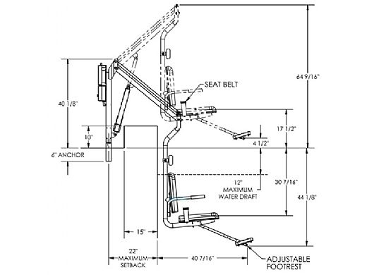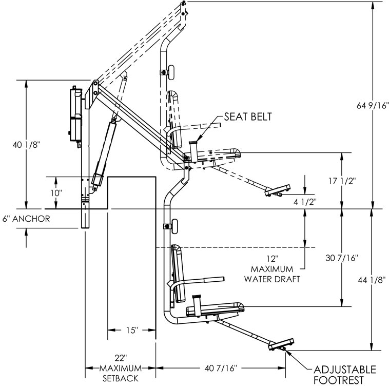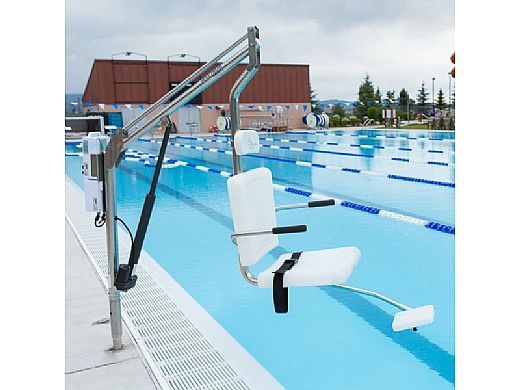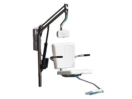 The Aspen battery powered ADA pool lift is designed for installation in the decks of in-ground and above-ground pools/spas. The Aspen ADA pool lift and ADA spa lift is an ADA/ABA compliant battery powered lift that has a safe and easy operating system and is rotationally and vertically powered. Accommodates a setback of 6" to 22" and a water draft up to 12".