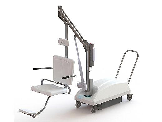 The Portable Motion Trek BP 300 Deluxe is an ADA compliant battery powered lift that is self-operable from the deck and the water with a robust operating system. This portable lift requires no anchor and is moveable and easy to operate. This model includes an upgraded footrest, headrest and arms