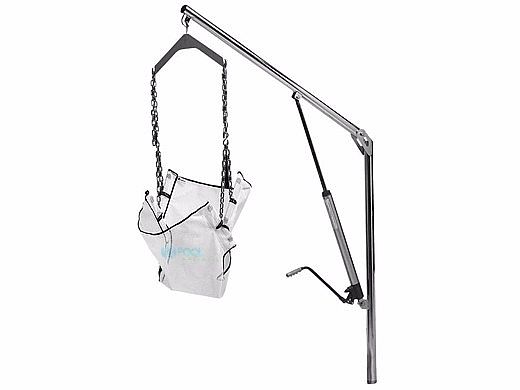 The Handy Lift manual hydraulic lifter is portable and removes from its anchor socket easily without tools. The Handy Lift is ideal for pools that require a lift in multiple locations. The frame is made completely of stainless steel to reduce corrosion, and the heavy-duty mesh sling is included.
