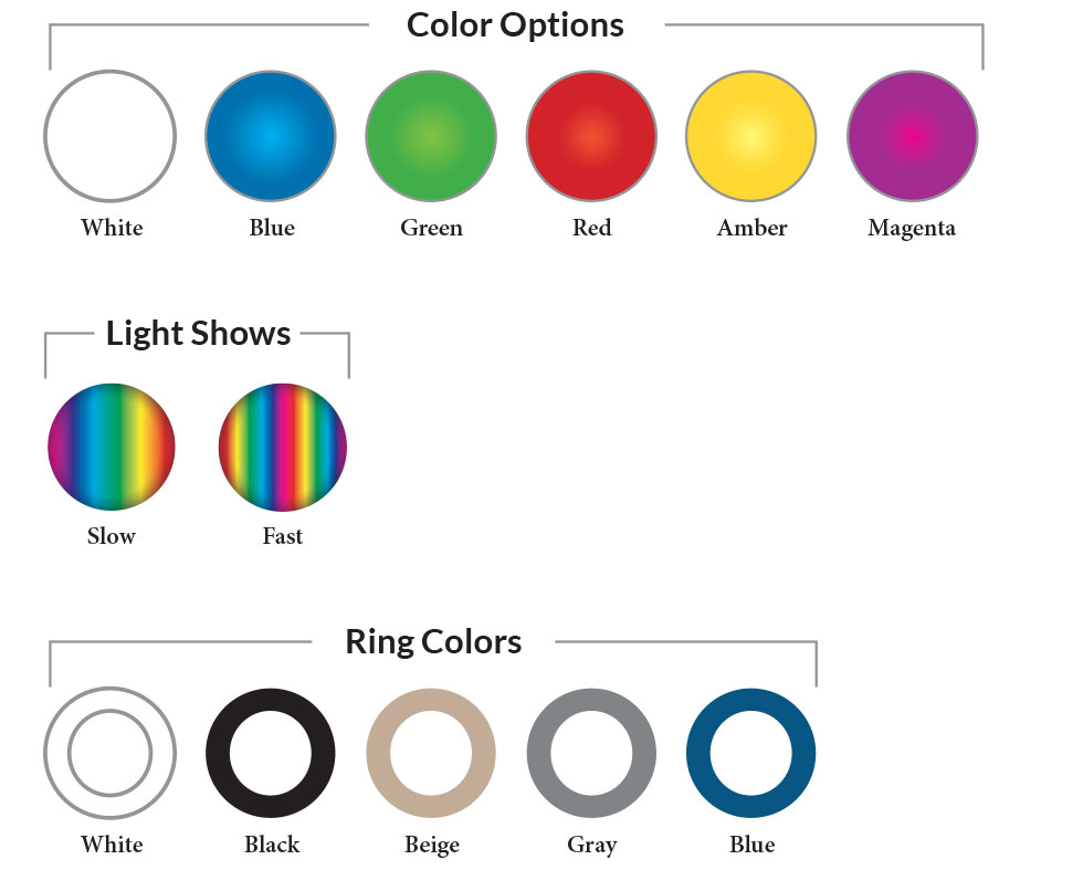 • 12V controls: (6) colors (white, blue, green , red, amber, magenta) and (2) light shows