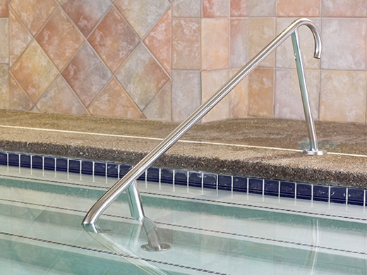 The Meridian Series Stair Rail is a patent-pending, designer inspired rail that provides an elegant custom look for any pool environment. This is the ideal choice for pool renovation projects, as the Meridian Series Stair Rail easily retrofits into an existing 5-ft 2-Bend or 3-Bend setting.