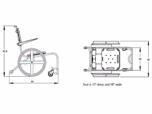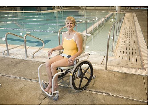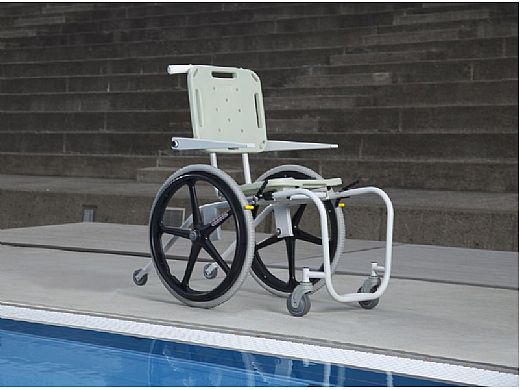 Mobile Aquatic Chairs (MAC) are essential for facilities utilizing a ramp, zero-depth entry or movable floor. The MAC is built specifically for use in aquatic environments with a powder coated stainless steel frame to resist corrosion and a swing away arm for easy transfer. The rigid roto-molded plastic seat aids in user transfer by providing a stable platform that can be used for transfer support. Front and rear stabilizer wheels eliminate the tendency of a chair to pitch forward or back while going down the ramp.
