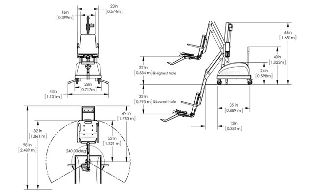 300 lb/136 kg lifting capacity - 240° rotation ensures a safe transfer area