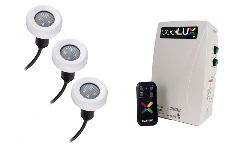 • SR Smith poolLUX Plus2 Multi-Zone Wireless Lighting Control System with Remote, 120 Watt 120V Transformer, Includes 3 Treo Light Kit, 3TR-PLX-PL2