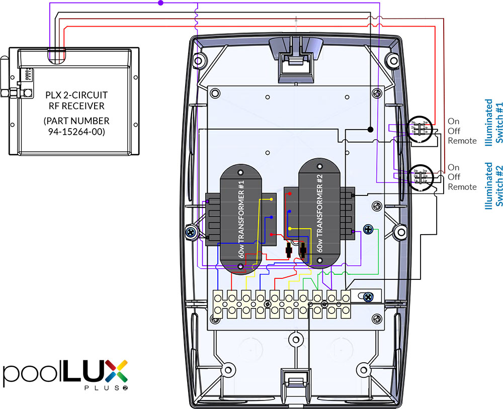 • (1) poolLUX Plus2 transformer multi-zone lighting control power unit with wireless remote