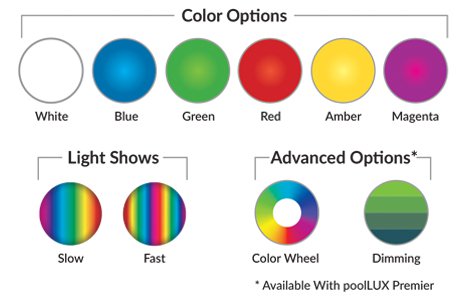 The poolLUX™ Premier Custom Lighting System with Wireless Control gives you advanced color control and dimming options for your Treo, Treo Micro, Fiberglass LED lights and Color Light Stream products.