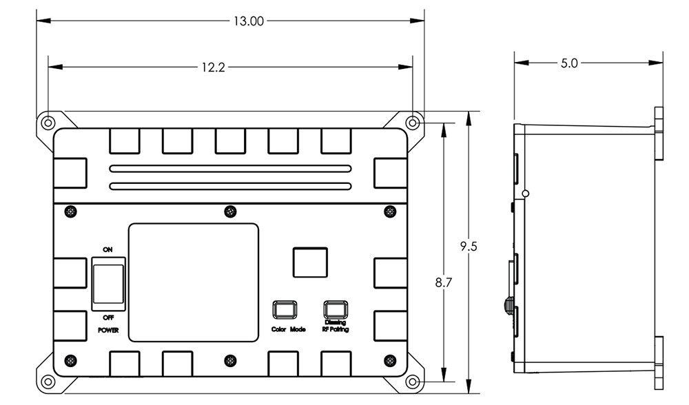 • Extended range (100’ Line of Sight) Wireless remote with color selection wheel and dimming bar