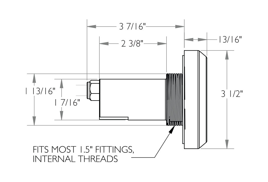 • Designed for use with standard thread 1.5” diameter wall fittings