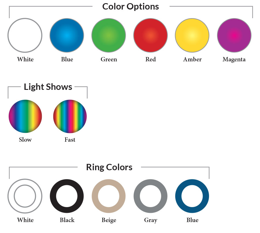 • Color memory function • Five colored trim rings included to match the surface of your pool or spa