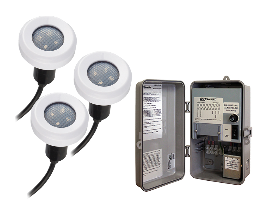 The TX-30 LED Pool Lighting Kit is a complete lighting system that includes a power center and up to three color Treo LED pool lights. The TX-30 power source has a manual on/off switch and is housed in a corrosion resistant polycarbonate enclosure rated NEMA 3R making it easy to operate and install. Please see the Treo LED Pool Light page for more information on the lights.