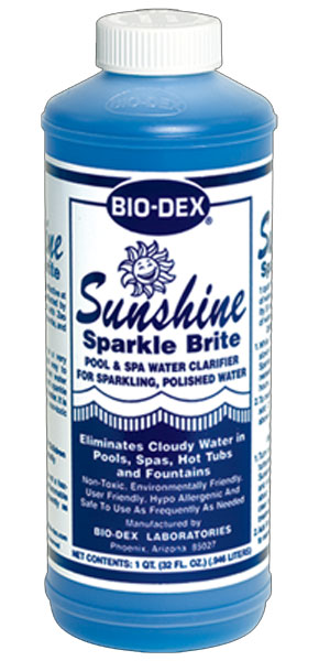Sunshine Sparkle Bright is a fast acting natural water clarifier and works with filtration without clogging and enhances water quality. The product works to get rid of cloudy water and produces clear and sparkling water. It’s non-toxic, non-hazardous and environmentally friendly. Users can safely use the product as often as necessary. It can also be used for regular maintenance after cleaning tile or algae treatments to keep water clear and sparkling. Users can add the product weekly to keep water quality at its peak. Product can be re-applied after 24 hours if additional application is necessary. Sunshine Sparkle Bright is a cost effective way to improve water quality and filtration. It isn’t affected by chlorine and works at all pH levels.