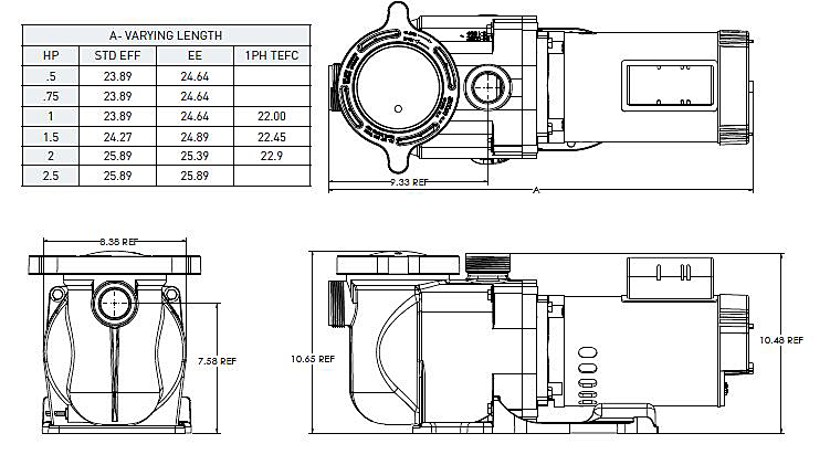 • Single and two-speed models ranging from 1/2 to 2-1/2 HP
