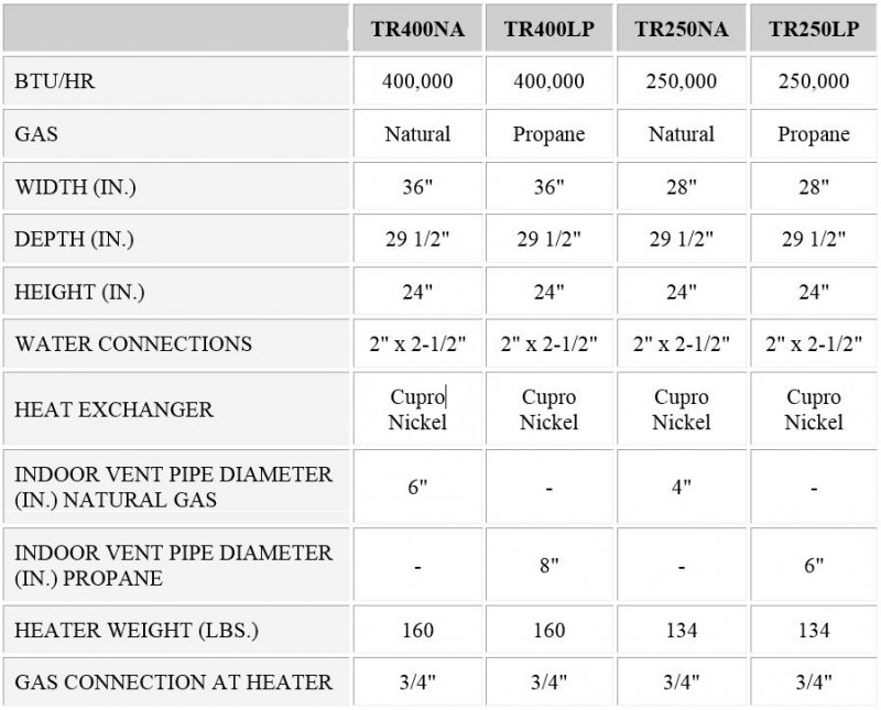 Trane Low Nox Swimming Pool and Spa Heater 250K BTU with Cupro Nickel PROPANE