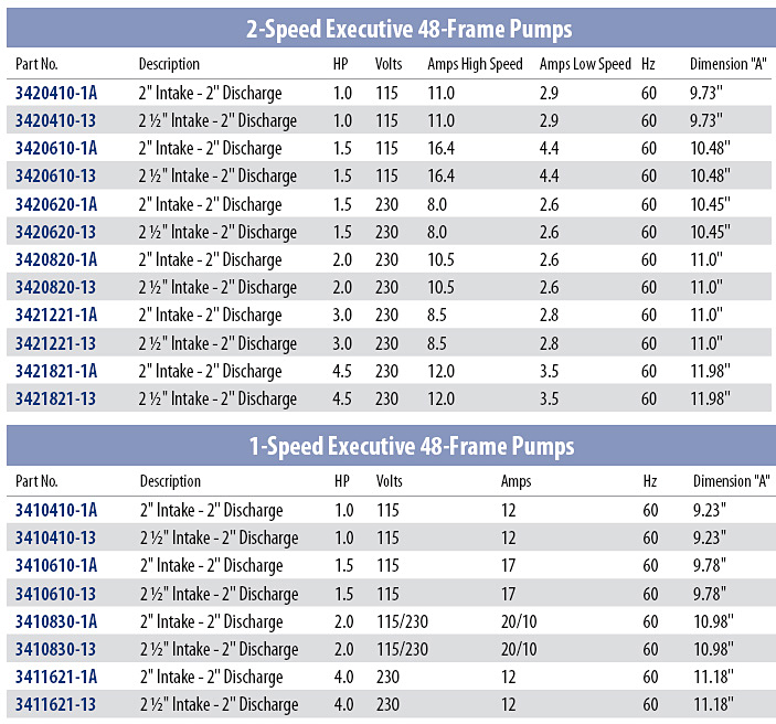 • Waterway Spa Pump Executive 48 Frame 2HP Dual Speed 2 in. 230V
